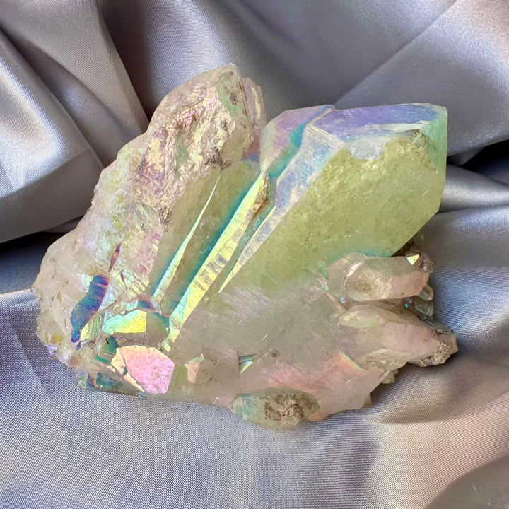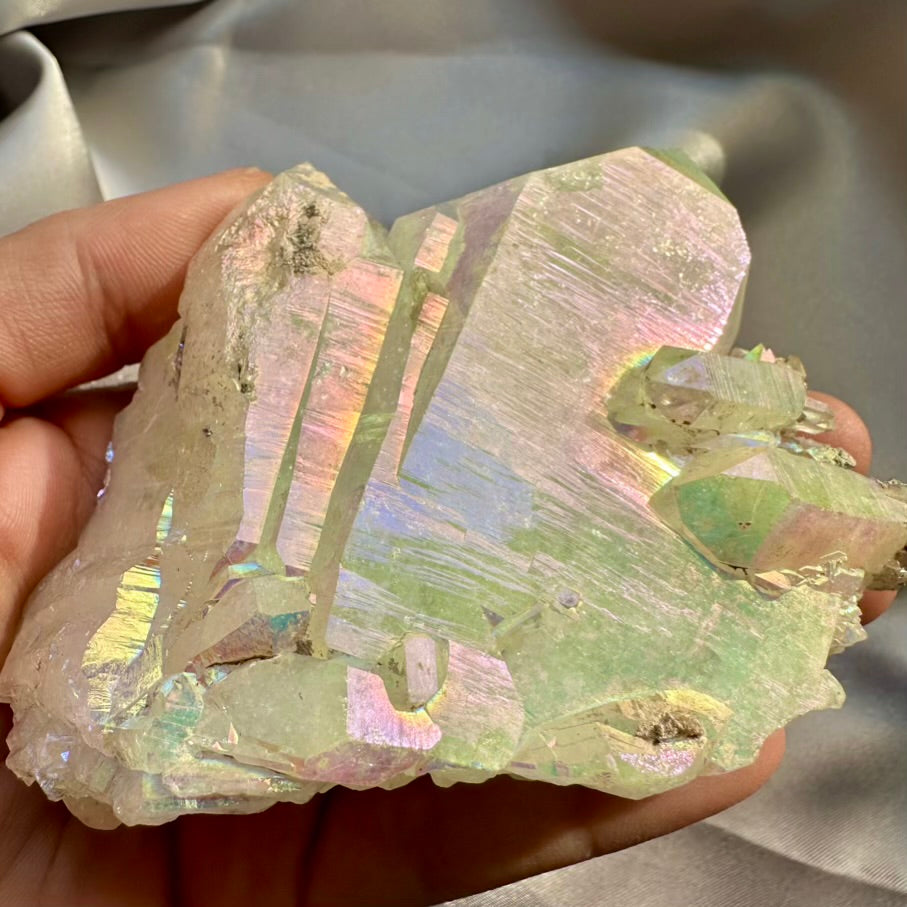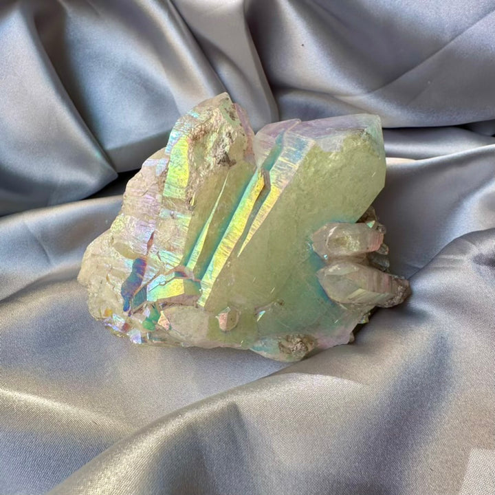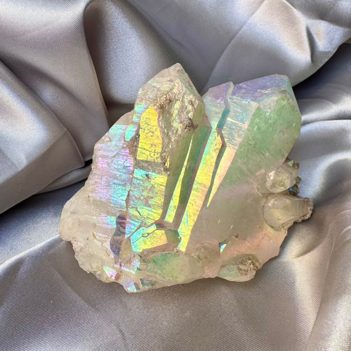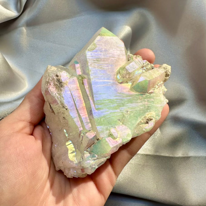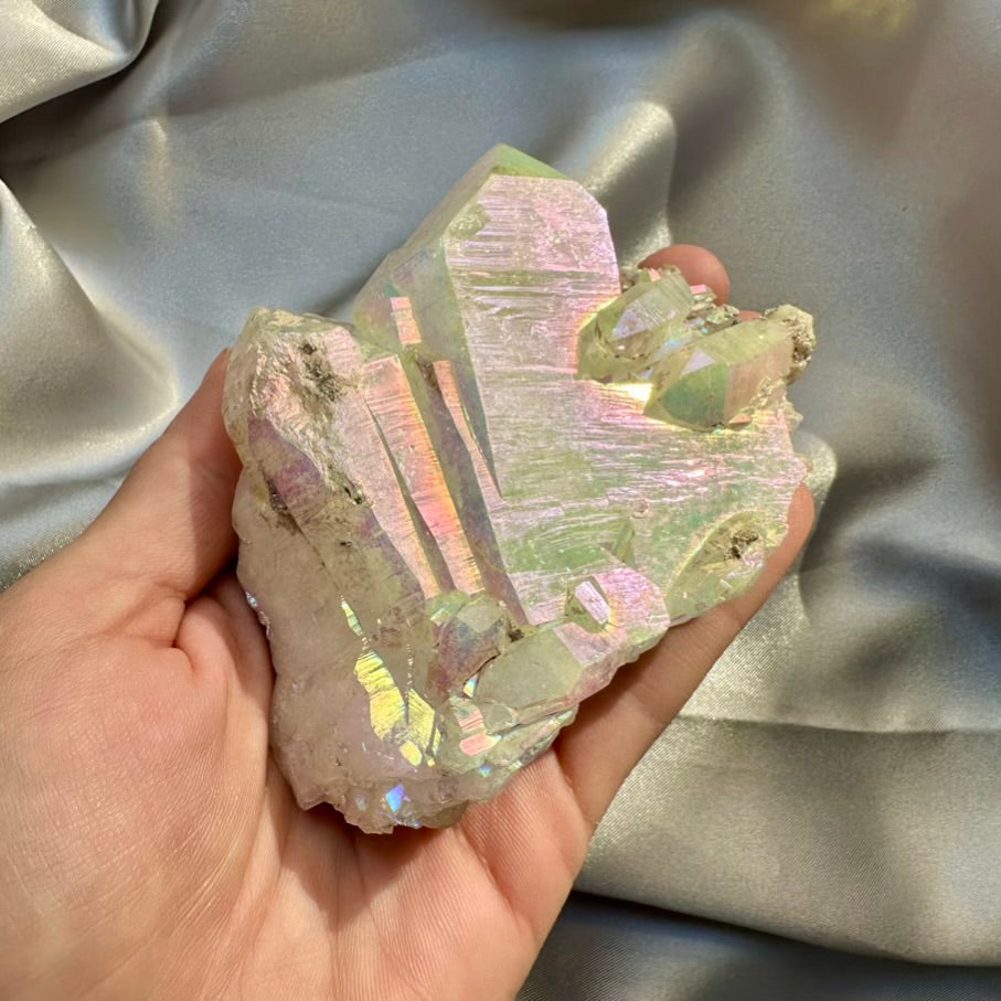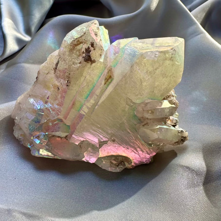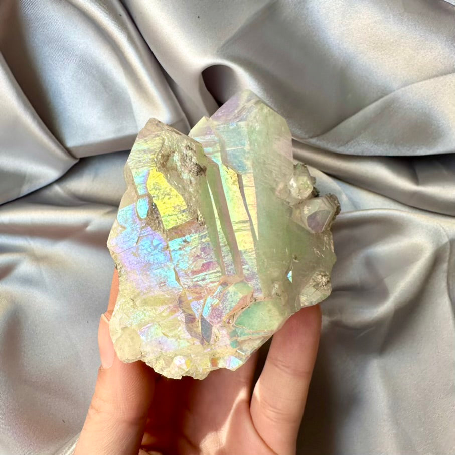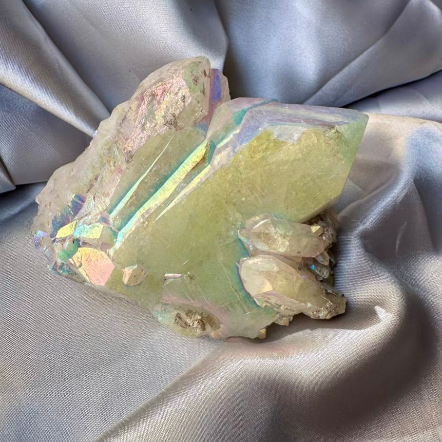 Experience the radiant energy of our Angel Aura Quartz Cluster, a high-quality natural quartz crystal celebrated for its brilliant clarity, healing vibration, and iridescent rainbow sheen.
