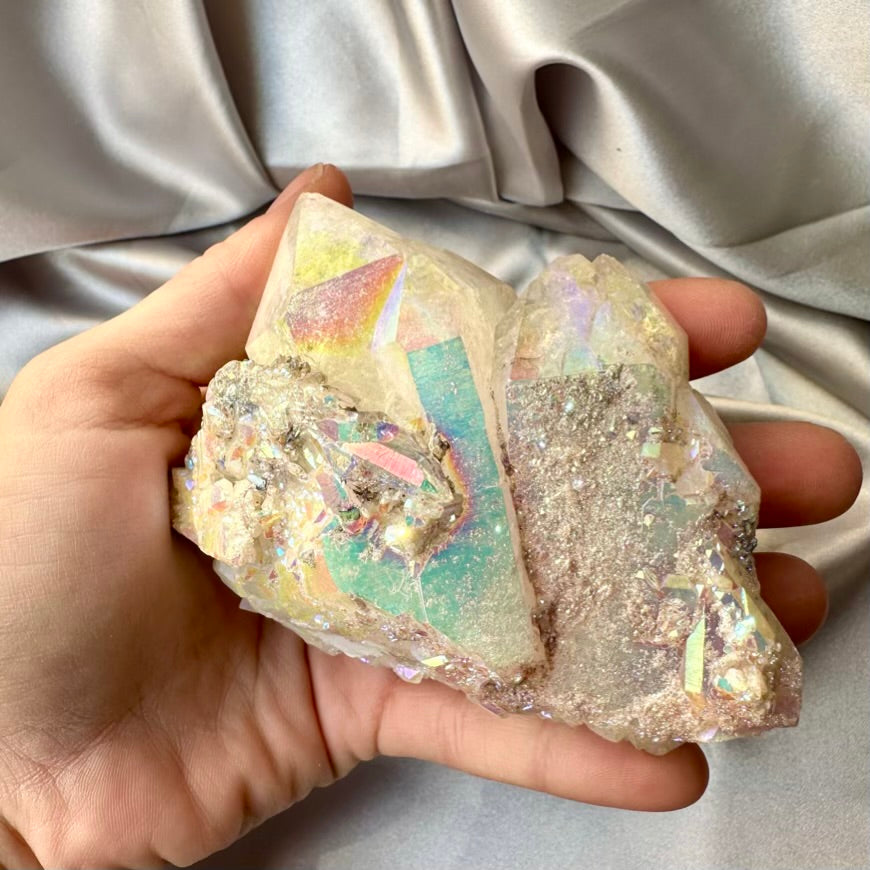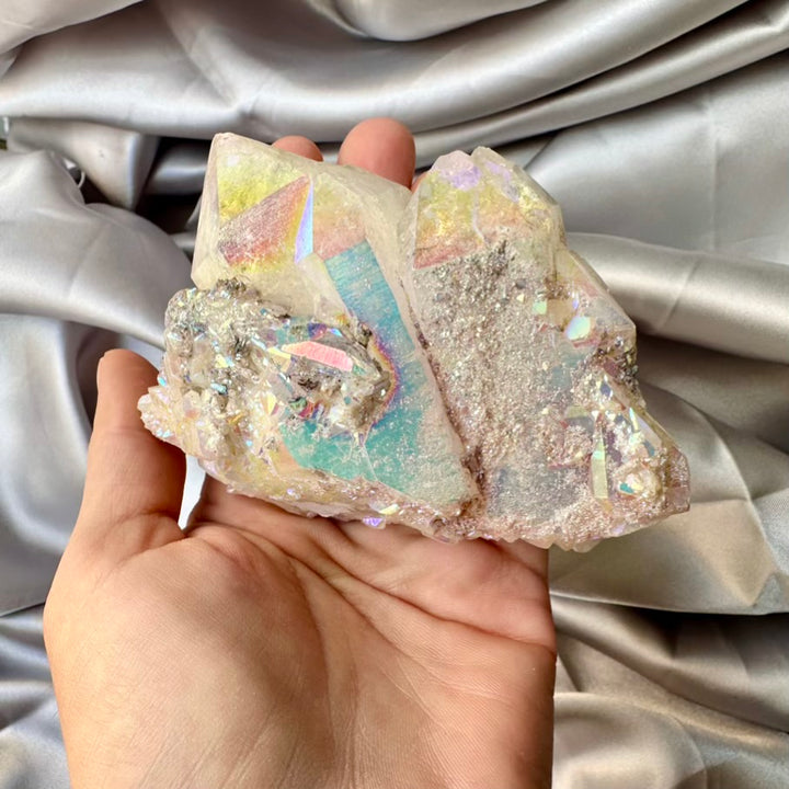 Each Angel Aura Quartz Cluster is carefully selected for its brilliance, natural energy, and unique beauty. Every piece is cleansed and charged, ready to enrich your crystal healing practice, meditation, or spiritual work. From energy stones and jewelry to home décor and sacred gifts, our collection celebrates the natural elegance and healing power of crystals.