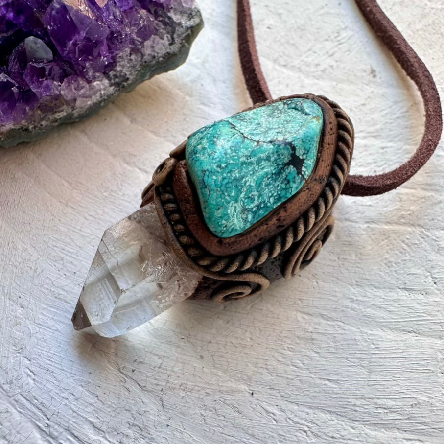 The Clear Quartz and Turquoise Necklace isn’t just jewelry