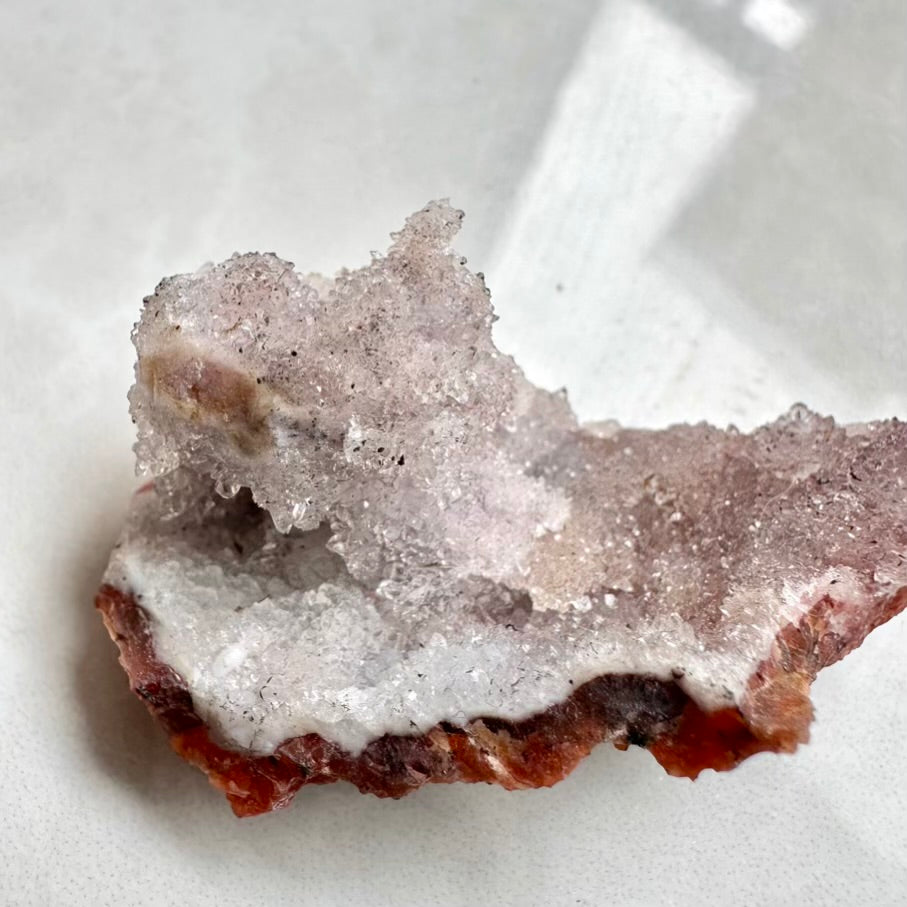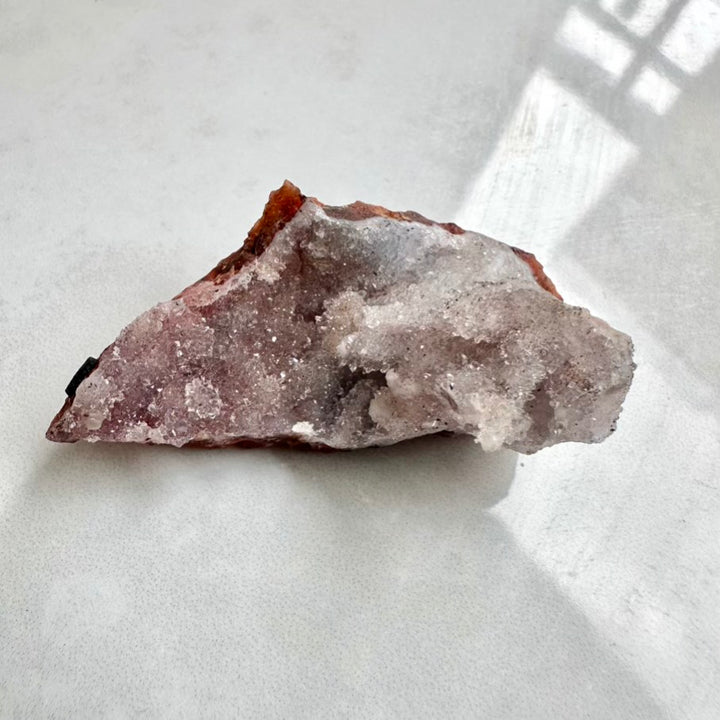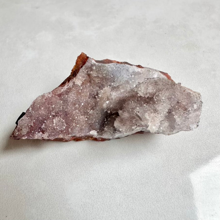 Sharp or uneven edges. Raw minerals, points, clusters, geodes, and arrowheads may have sharp or rough areas; handle carefully to avoid cuts or scratches.
