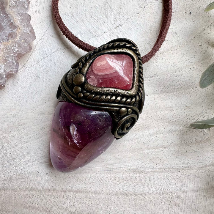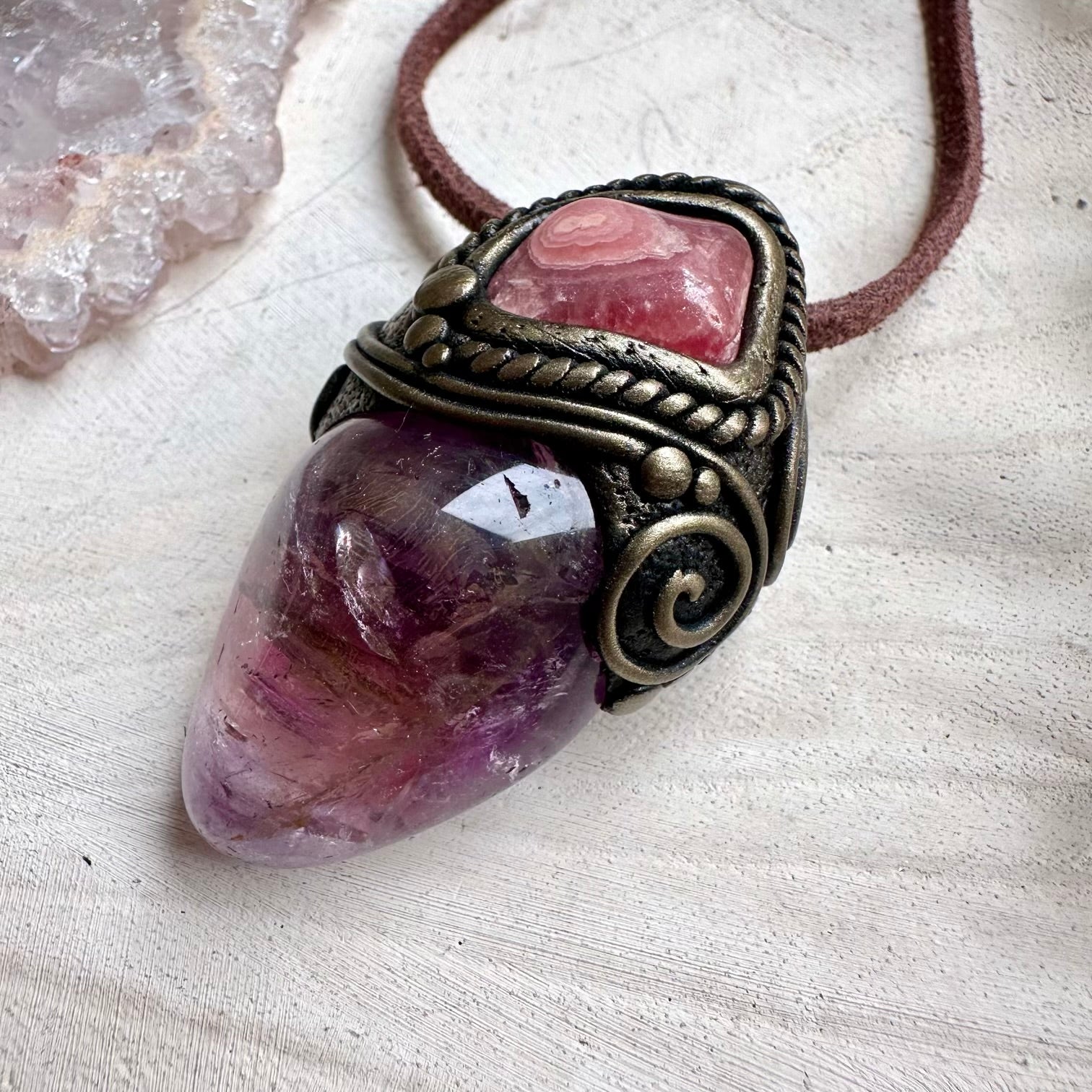 The Ametrine and Rhodochrosite Pendant Necklace isn’t just jewelry