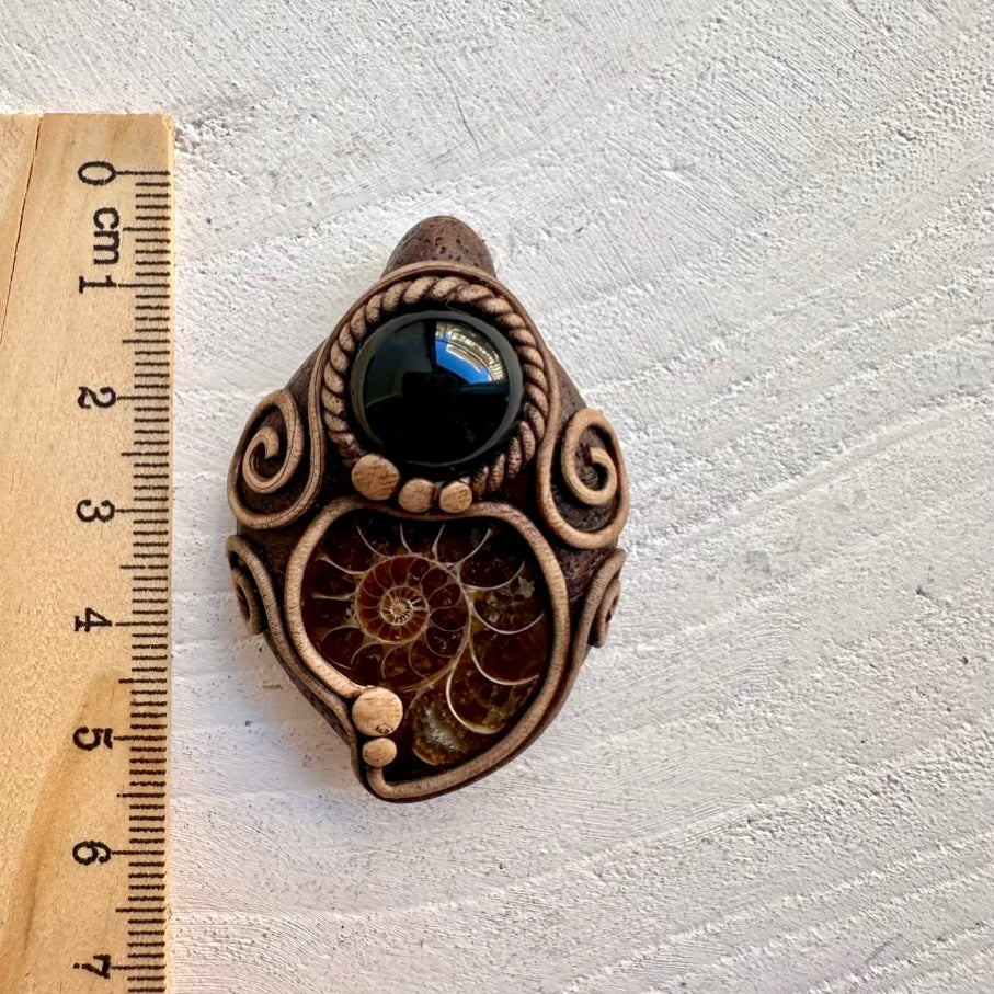 The Ammonite and Black Onyx Necklace Unisex Handmade Pendant isn’t just jewelry