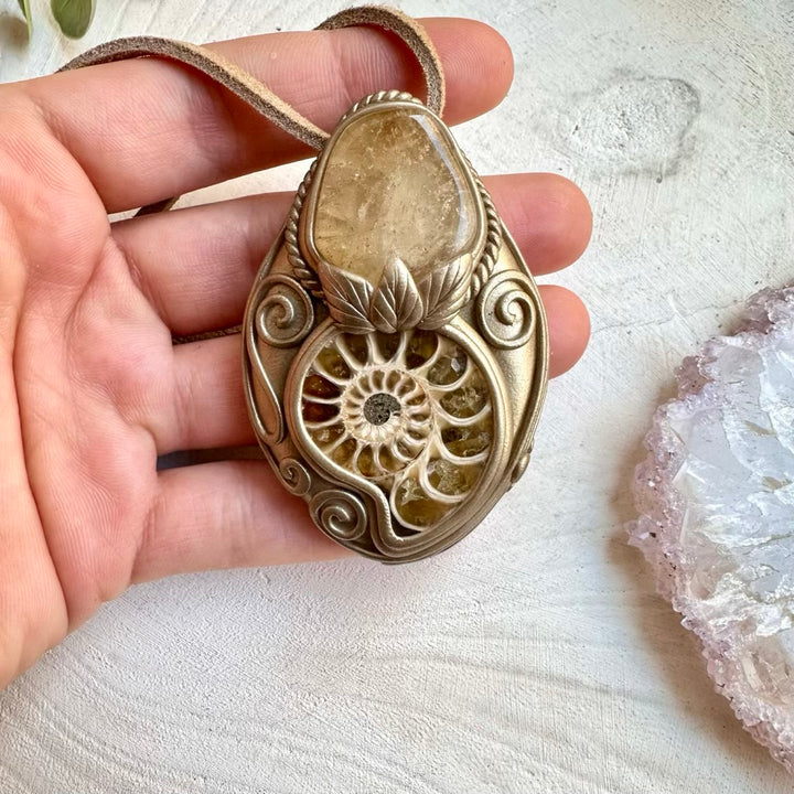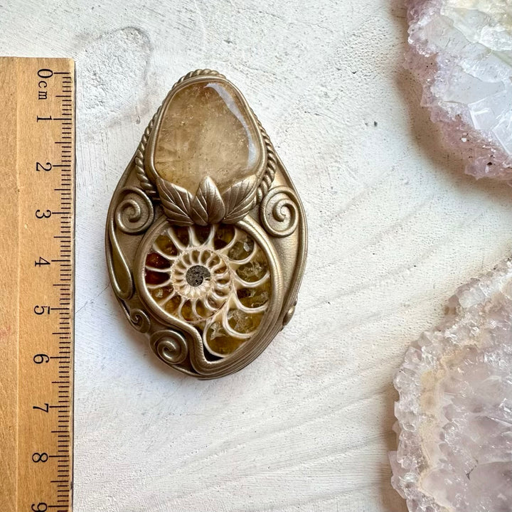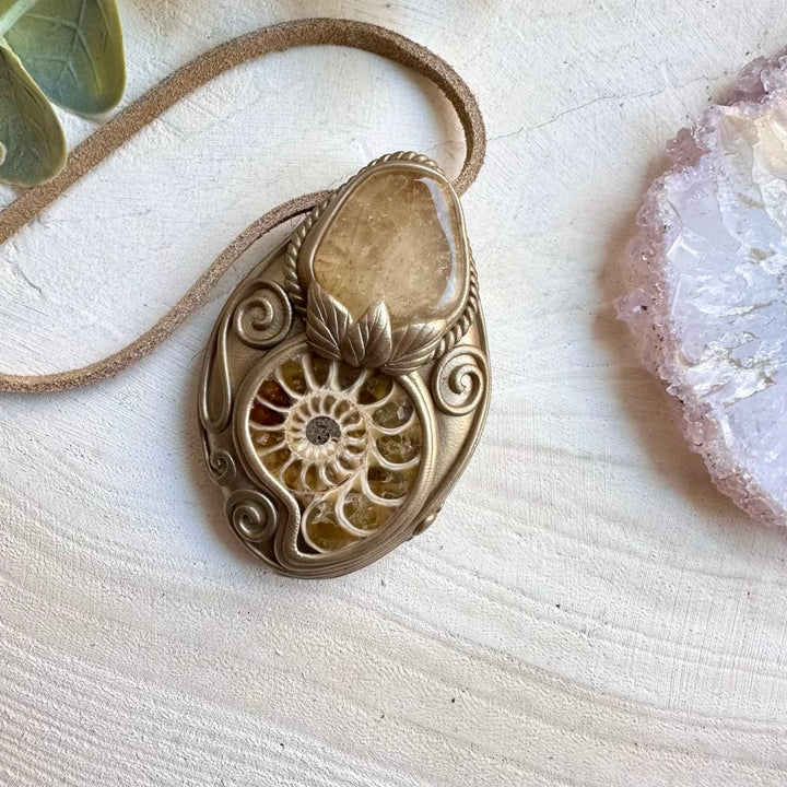 The Ammonite and Citrine Pendant isn’t just jewelry