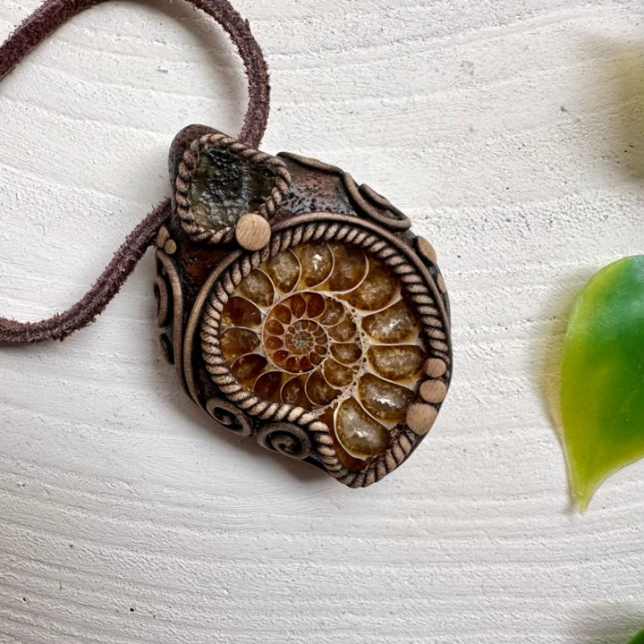 The Ammonite and Moldavite Pendant Necklace isn’t just jewelry