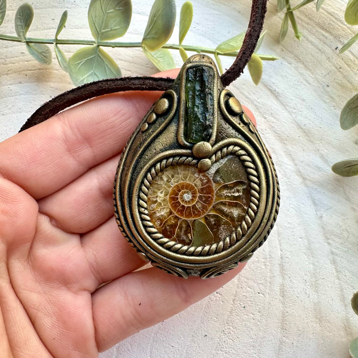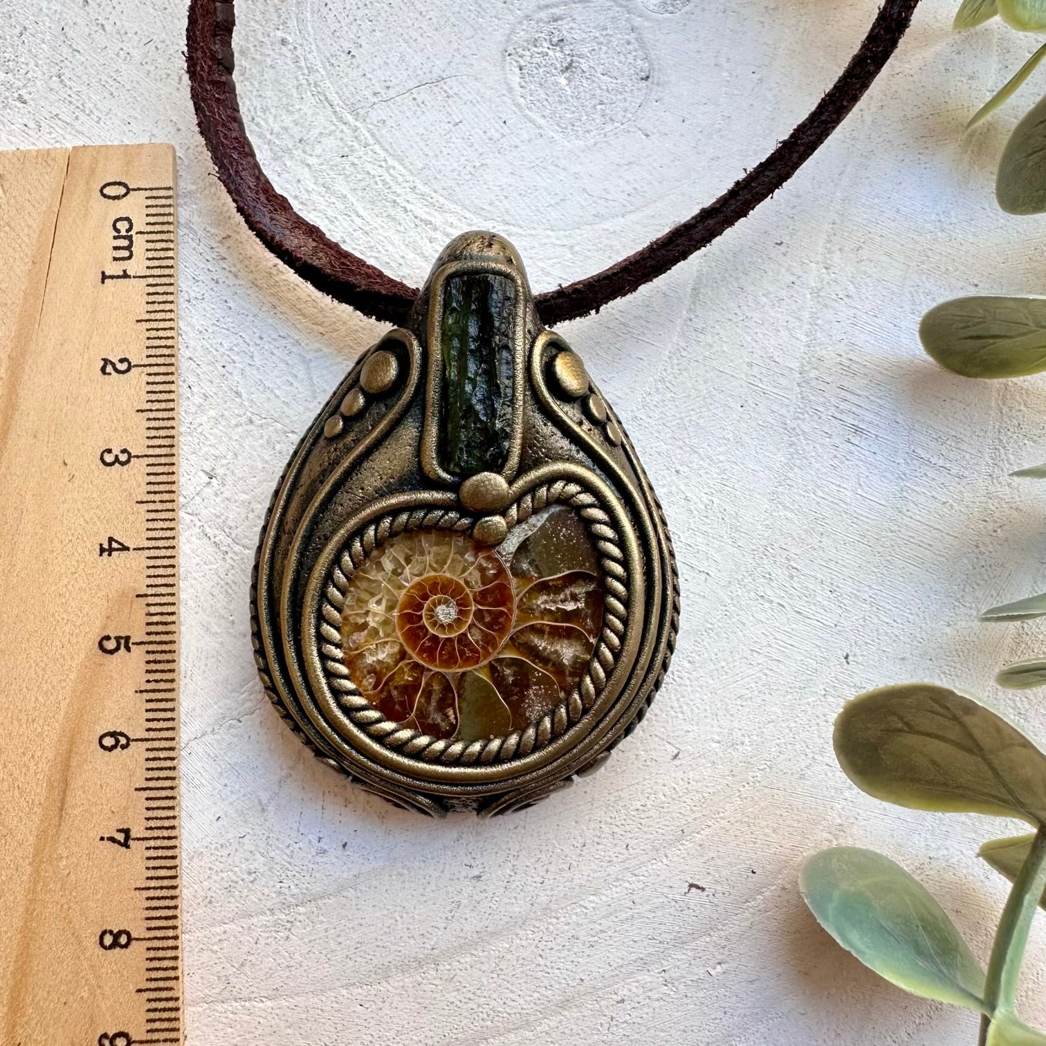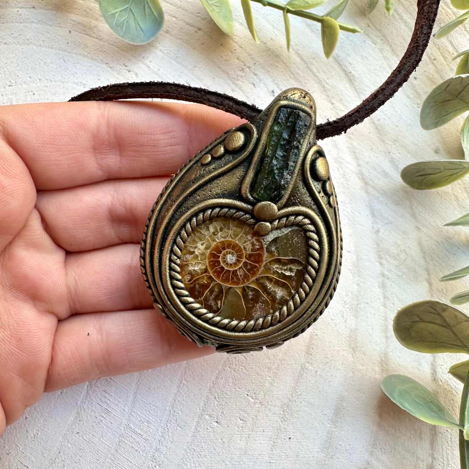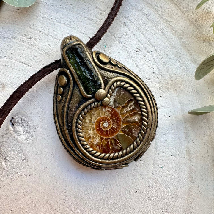 Fragile handcrafted elements. Polymer clay details, handcrafted mounts, metal components, and crystal settings can break if bent, dropped, or exposed to force. Please handle with care.