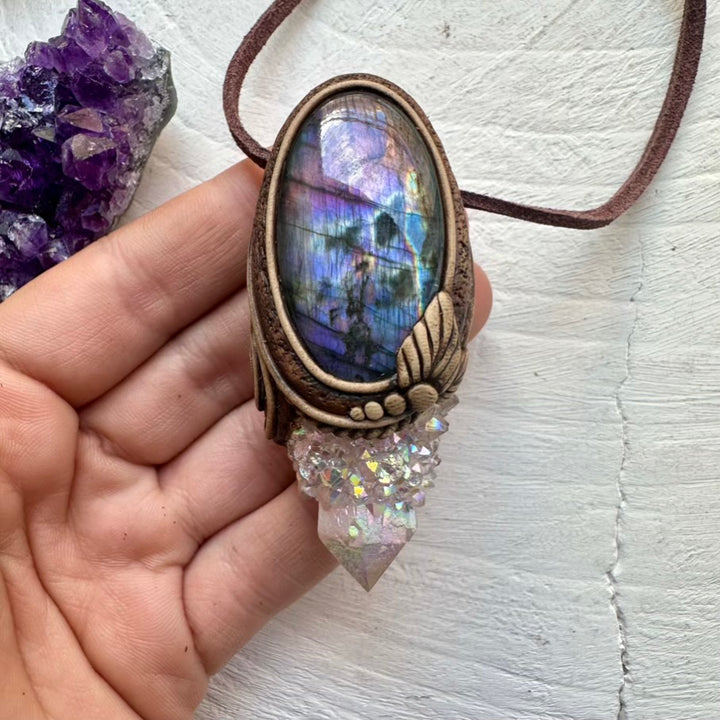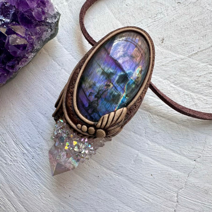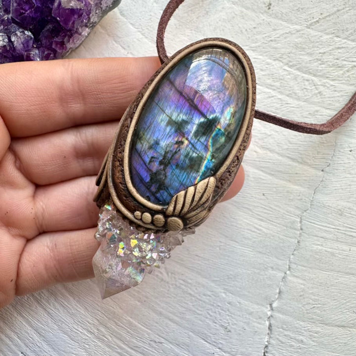 Angel Aura Spirit Quartz and Purple Labradorite Pendant, Healing Crystal Jewelry