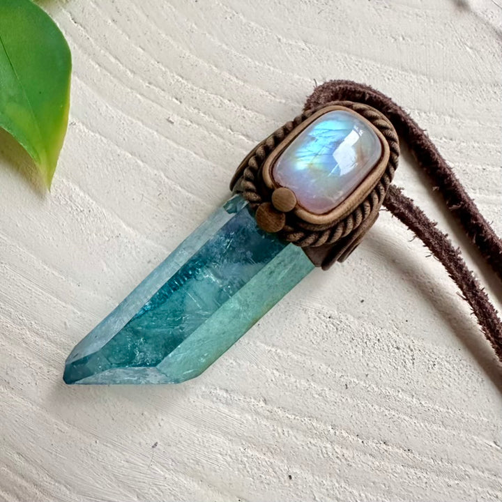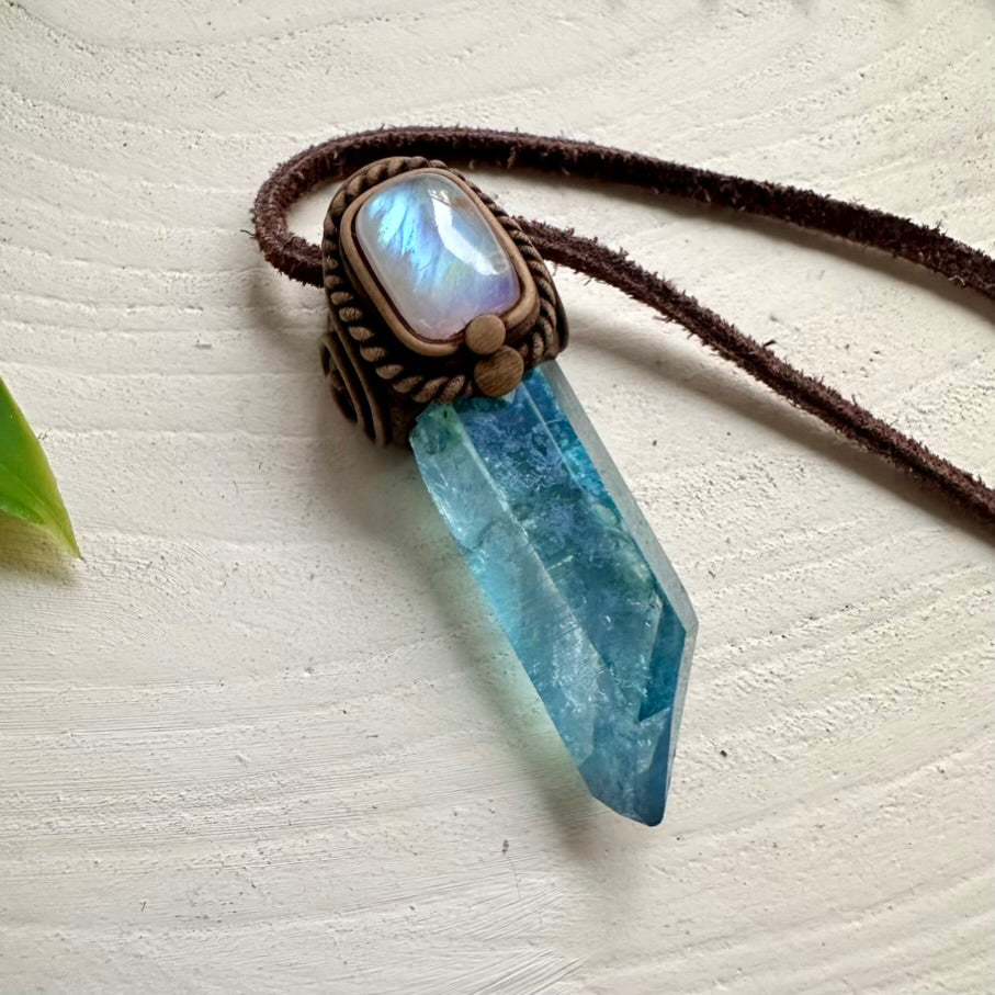 Sharp or rough edges. Natural crystals, points, and metal findings may have sharp or uneven areas — be mindful when wearing, holding, or displaying the item.
