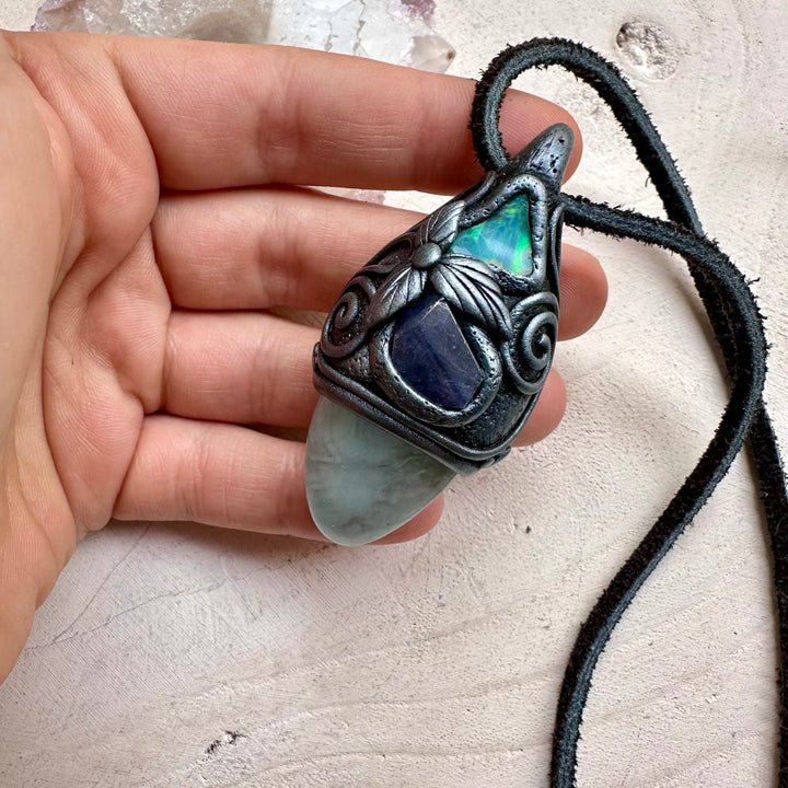 The Aquamarine Tanzanite and Raw Ethiopian Opal Handmade Protection Necklace isn’t just jewelry