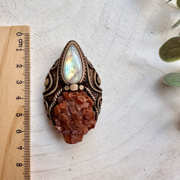 Healing crystal pendant with aragonite and moonstone