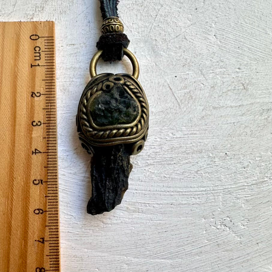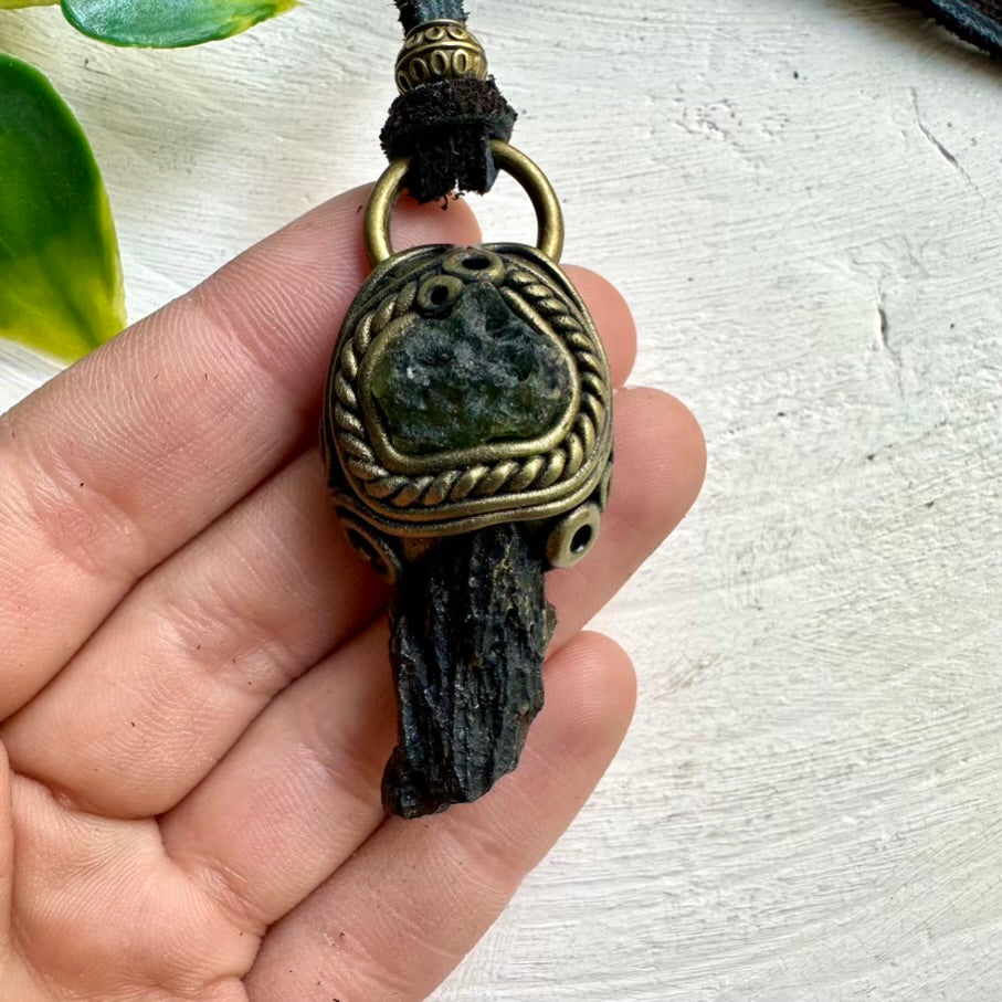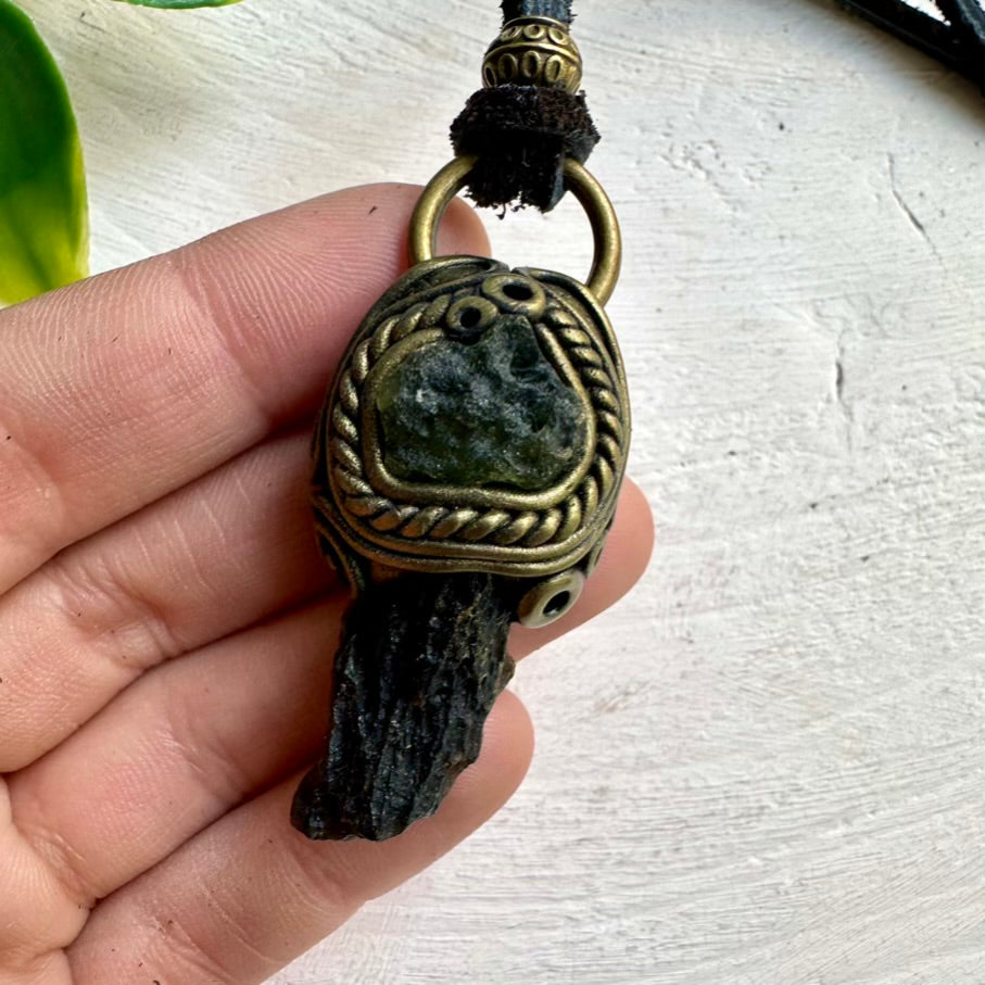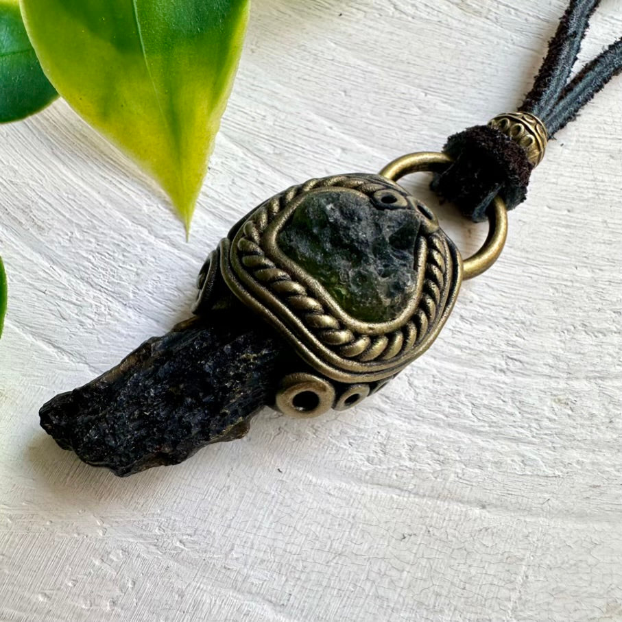 The Black Tektite and Moldavite Pendant Necklace isn’t just jewelry