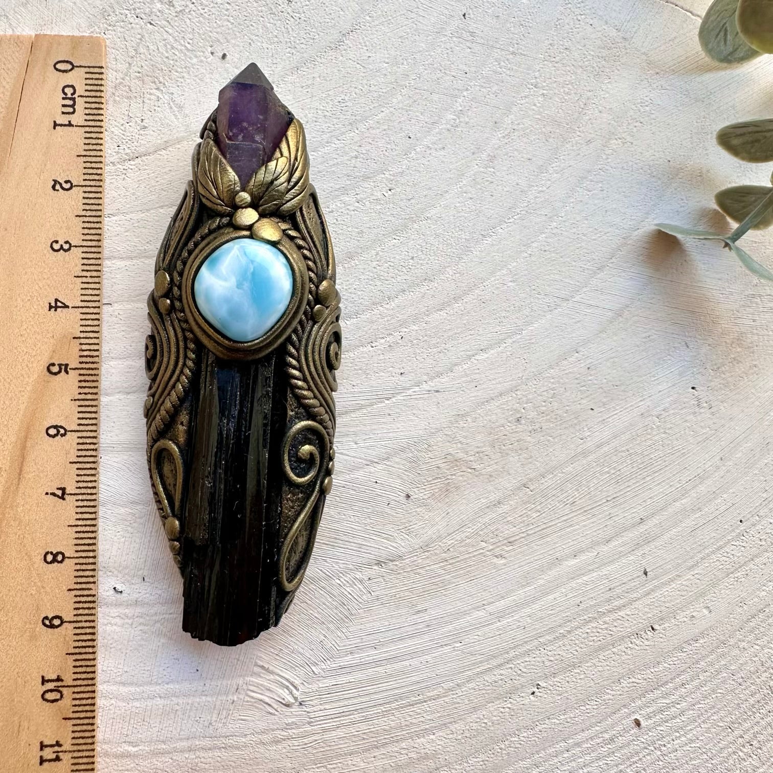 The Black Tourmaline Amethyst Point and Larimar Pendant Necklace is a unique handmade piece of healing crystal jewelry. Created with carefully selected natural gemstones, this necklace combines beauty with powerful energy for everyday wear, meditation, and spiritual practices.