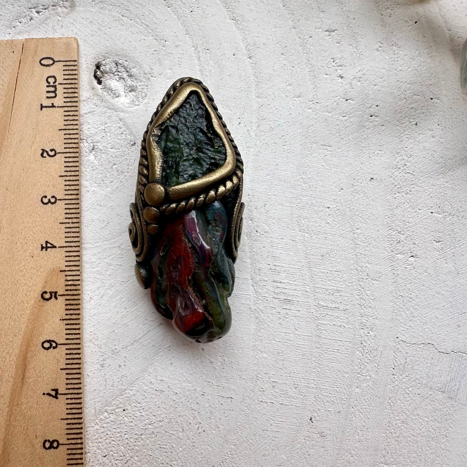 The Bloodstone and Moldavite Unisex Pendant Necklace isn’t just jewelry