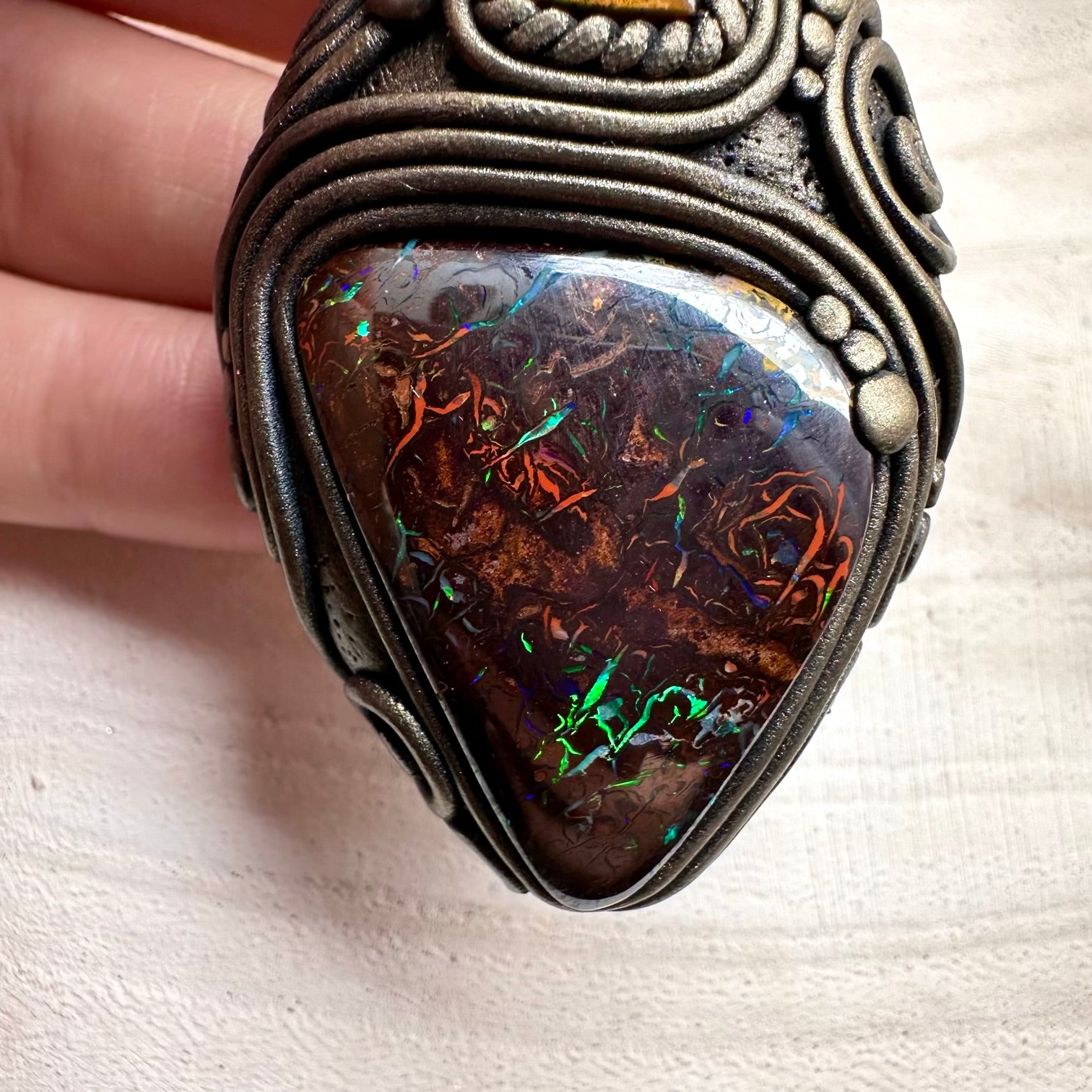 The Boulder Opal and Ammolite Pendant, Unique Handmade Necklace isn’t just jewelry