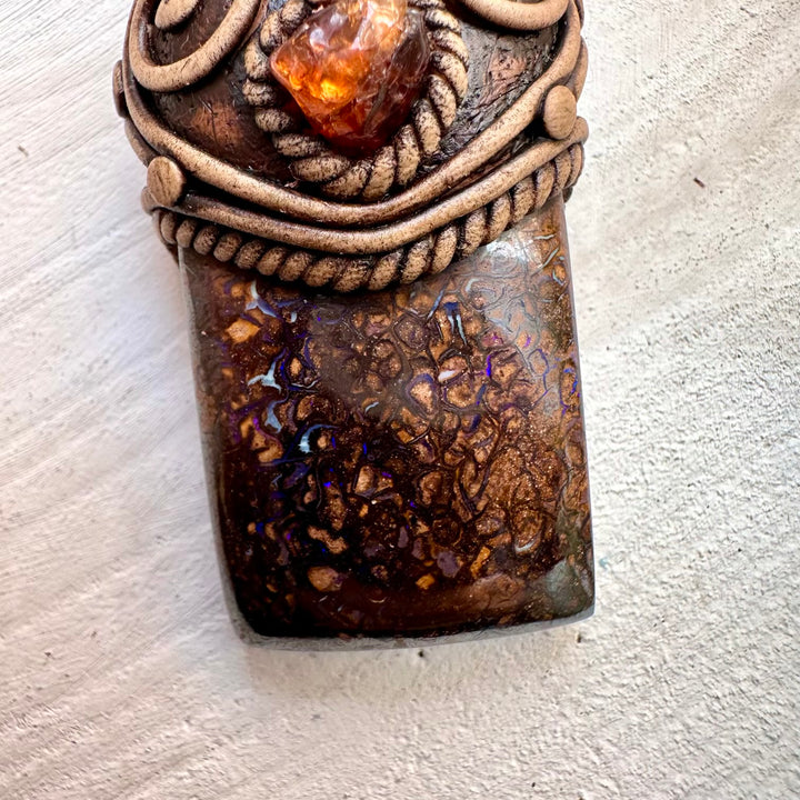 The Boulder Opal and Hessonite Garnet Necklace Unisex Handmade Jewelry isn’t just jewelry