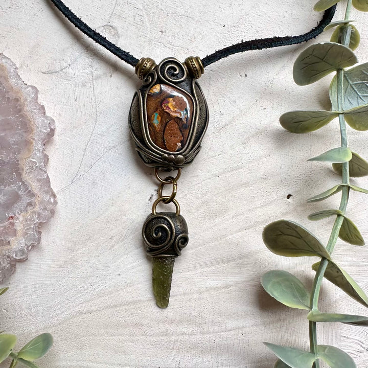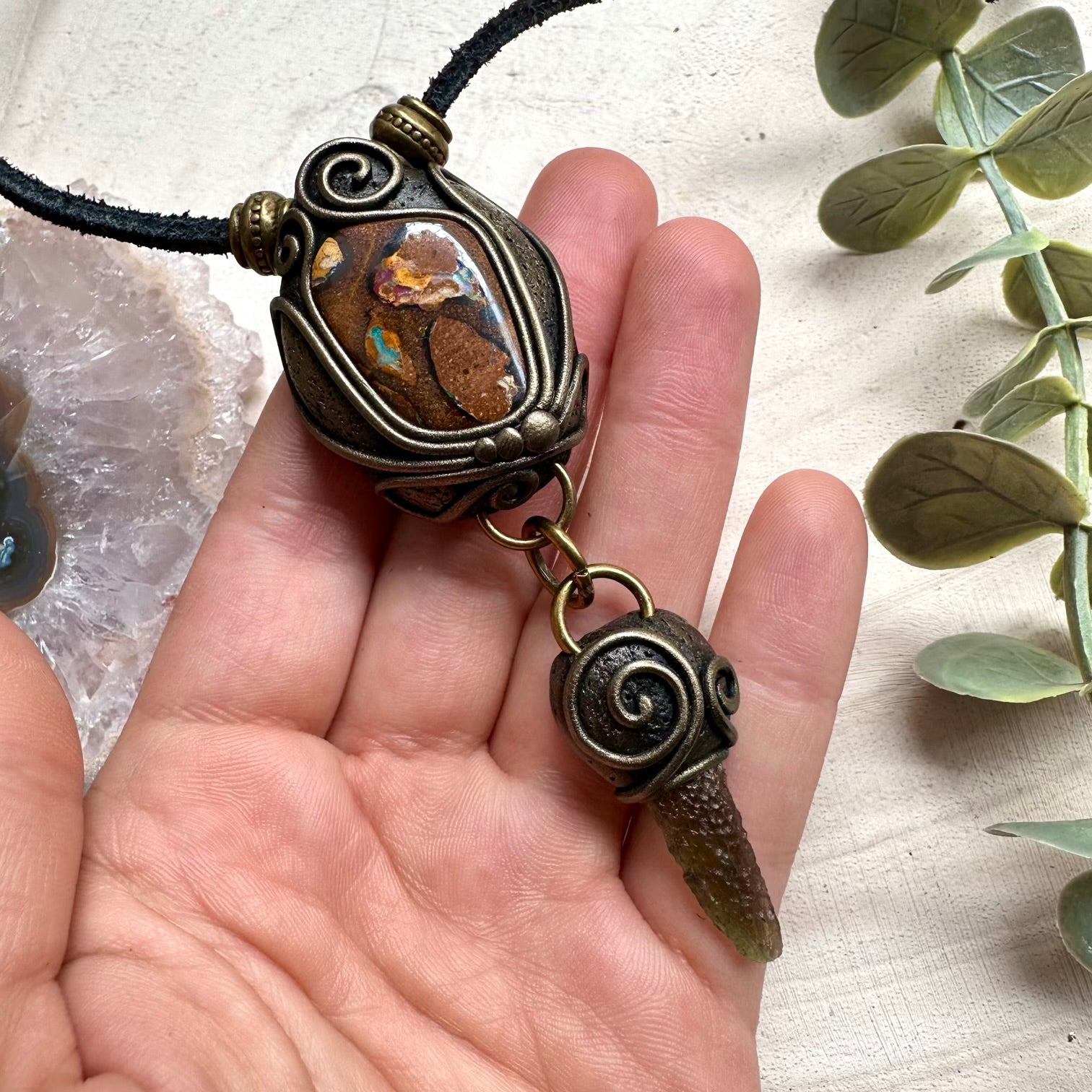 The Boulder Opal and Moldavite Pendant Necklace isn’t just jewelry