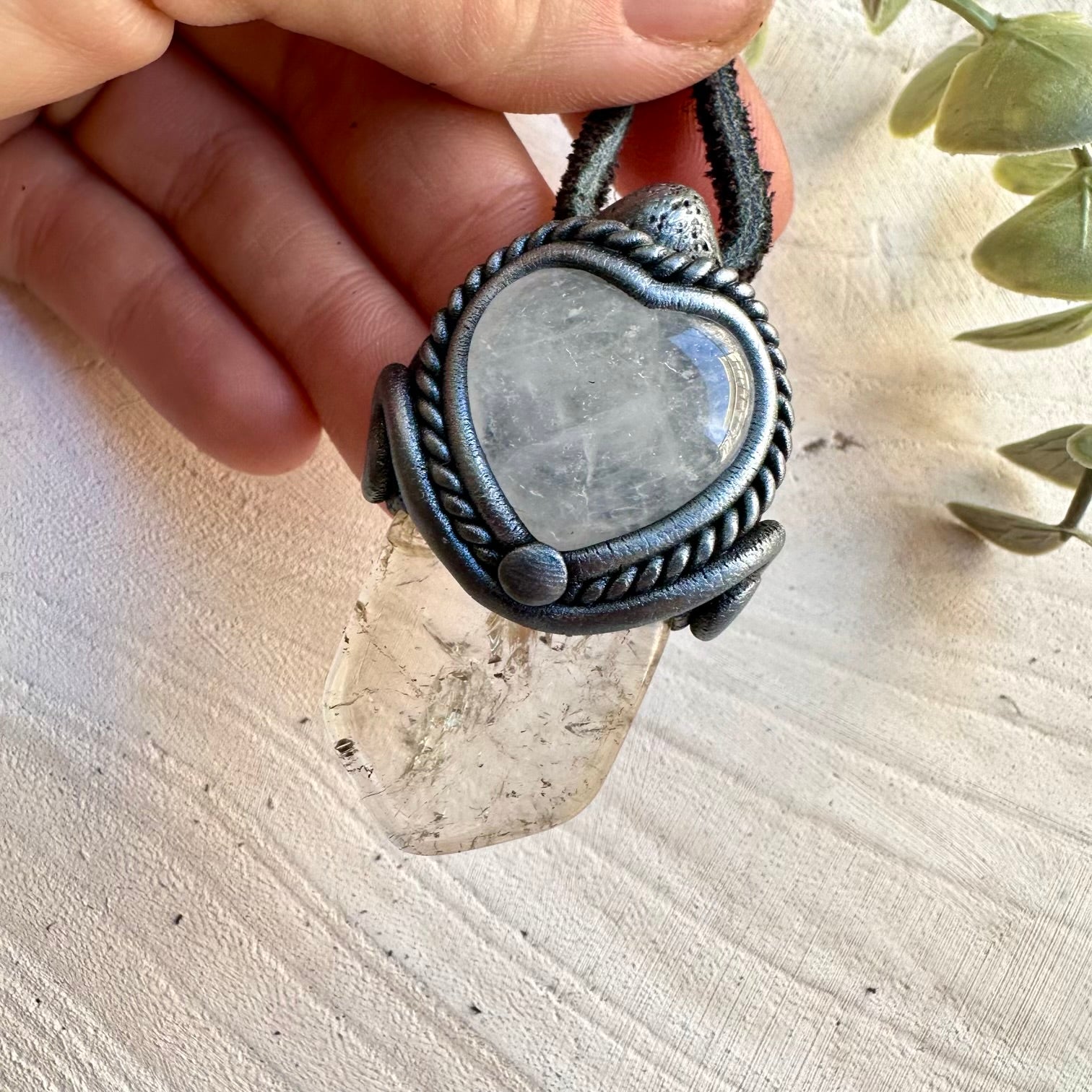 Fragile handcrafted elements. Polymer clay details, handcrafted mounts, metal components, and crystal settings can break if bent, dropped, or exposed to force. Please handle with care.