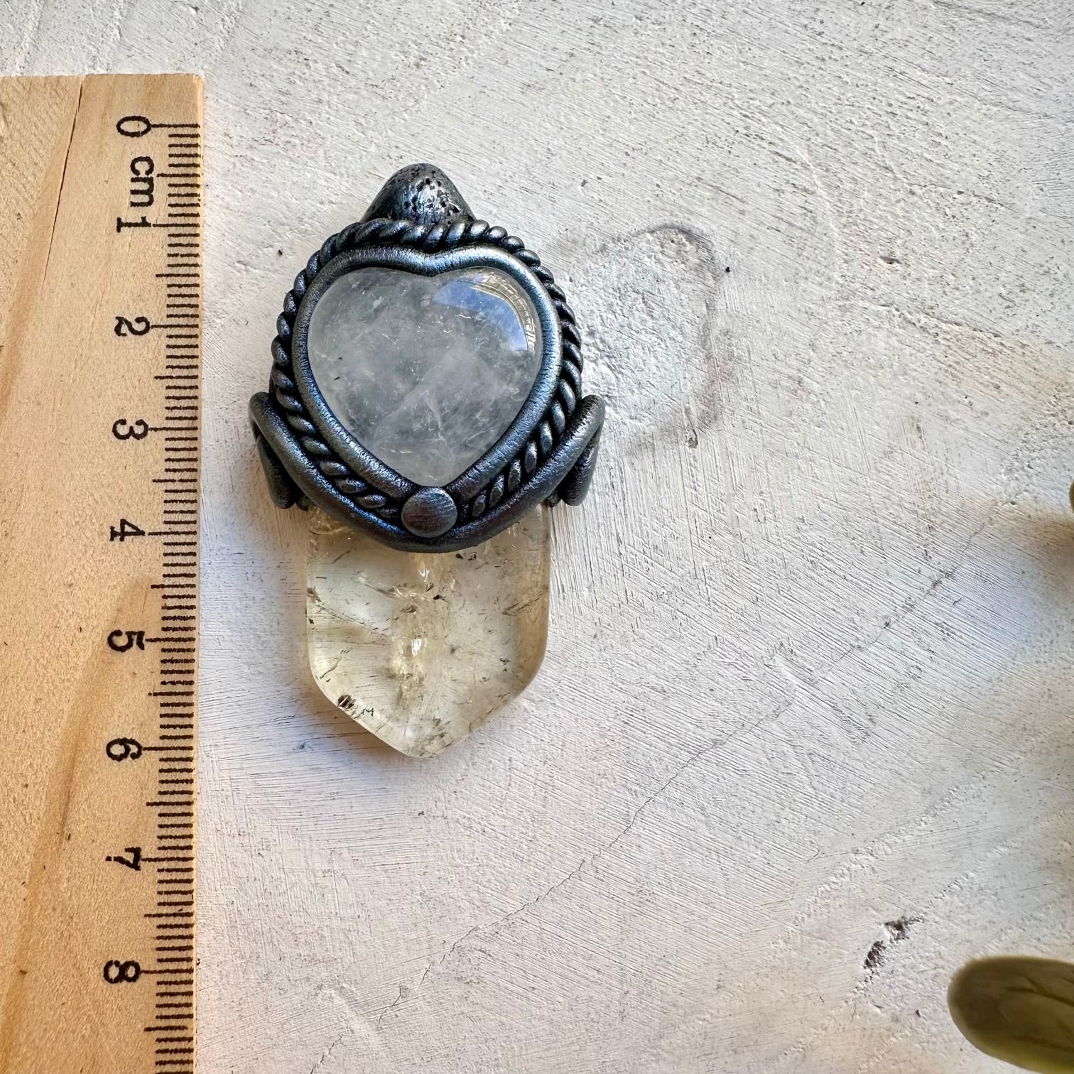 Sharp or rough edges. Natural crystals, points, and metal findings may have sharp or uneven areas — be mindful when wearing, holding, or displaying the item.