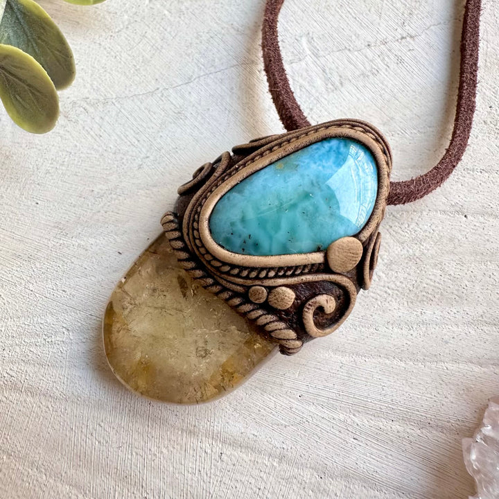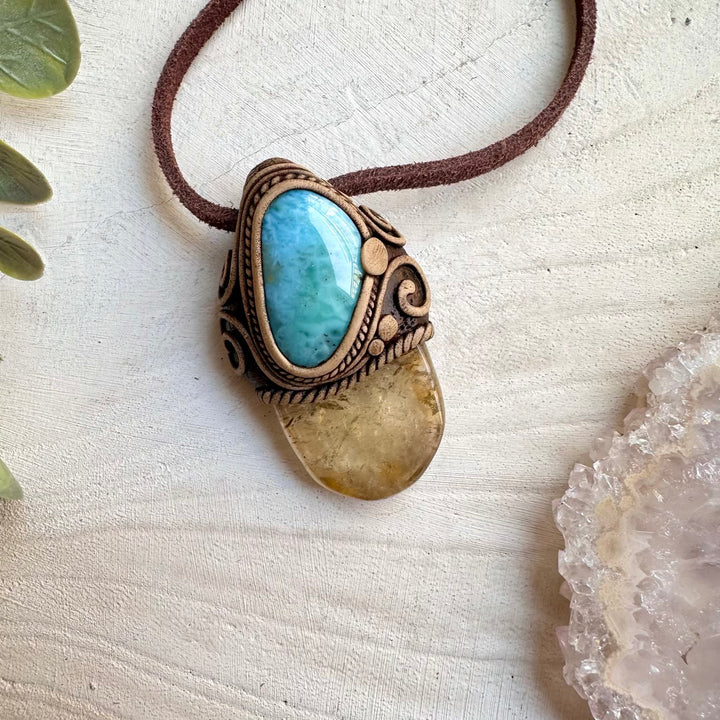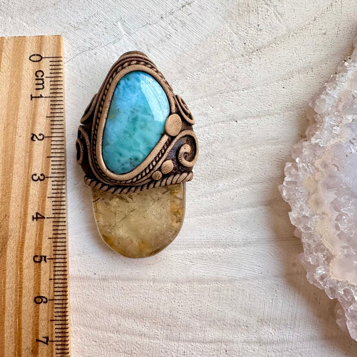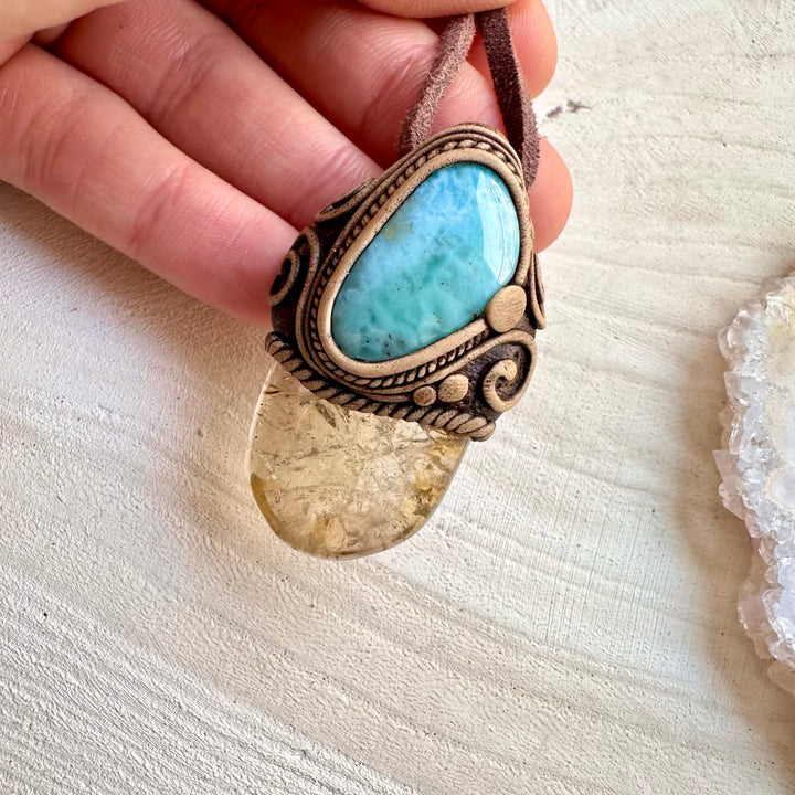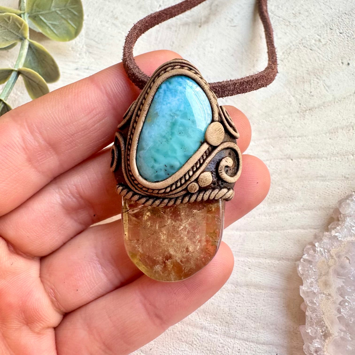 Fragile handcrafted elements. Polymer clay details, handcrafted mounts, metal components, and crystal settings can break if bent, dropped, or exposed to force. Please handle with care.