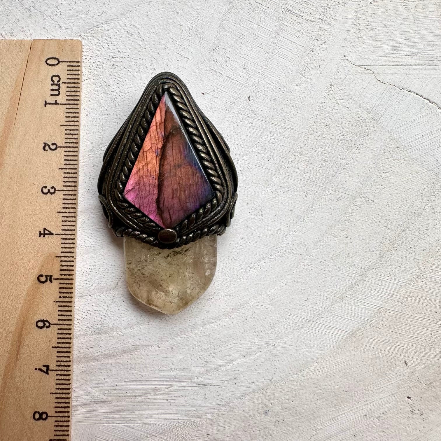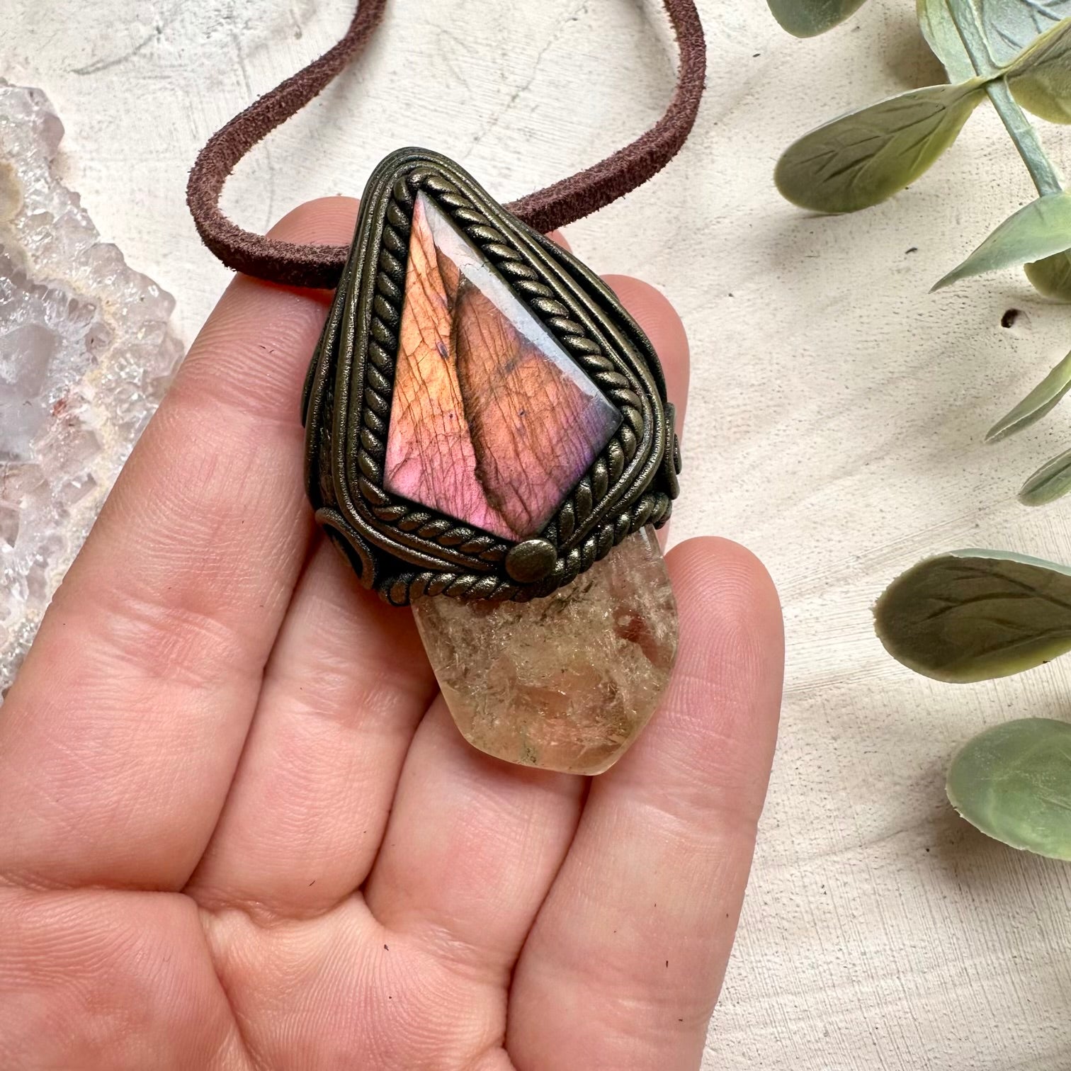 Healing crystal pendant with citrine and sunset labradorite