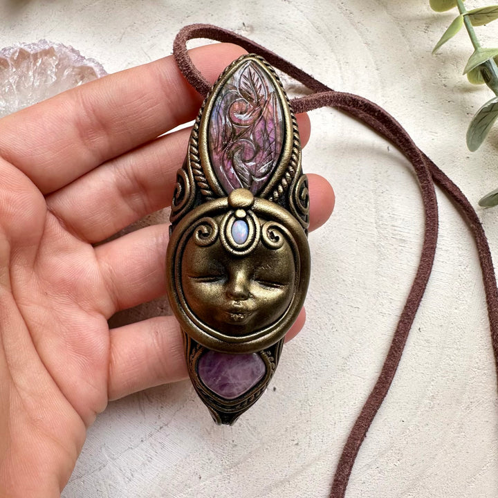 Handmade goddess necklace with labradorite and lavender quartz