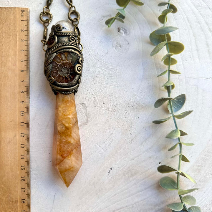 Sharp or rough edges. Natural crystals, points, and metal findings may have sharp or uneven areas — be mindful when wearing, holding, or displaying the item.