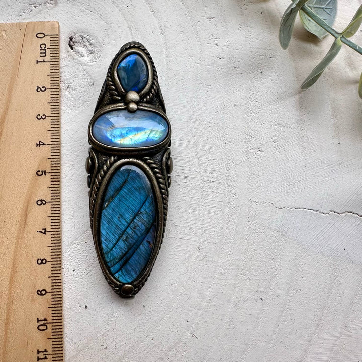 Healing crystal pendant with labradorite and rainbow moonstone
