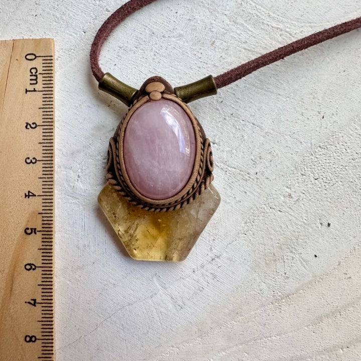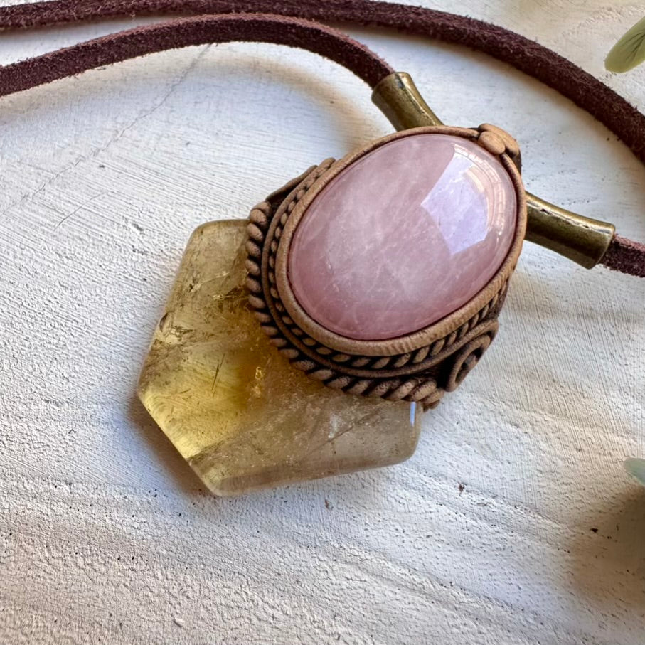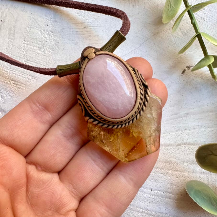 Spiritual crystal necklace featuring citrine and rose quartz stones
