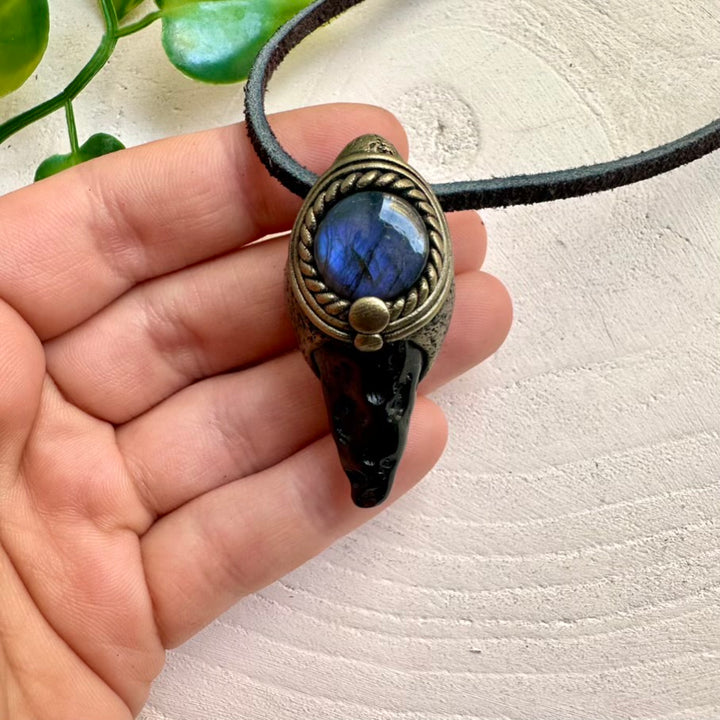 The Polished Black Tektite and Labradorite Pendant Necklace isn’t just jewelry