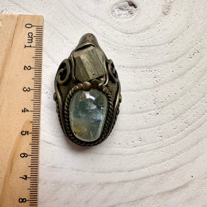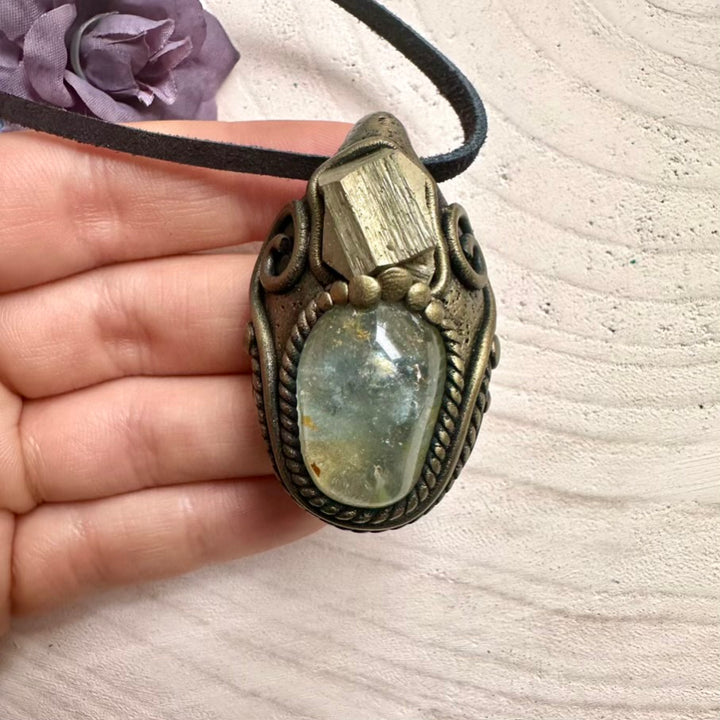 Ethically sourced Topaz and natural Pyrite pendant, artisan handcrafted unisex gemstone jewelry.